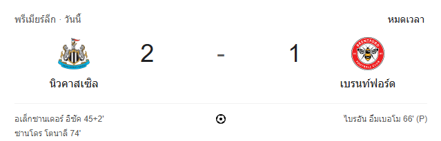 - นาที 99: จบเกม! บ้านกีฬา รายงาน ผลบอลสด อย่างเป็นทางการ นิวคาสเซิ่ล ยูไนเต็ด 2-1 เบรนท์ฟอร์ด