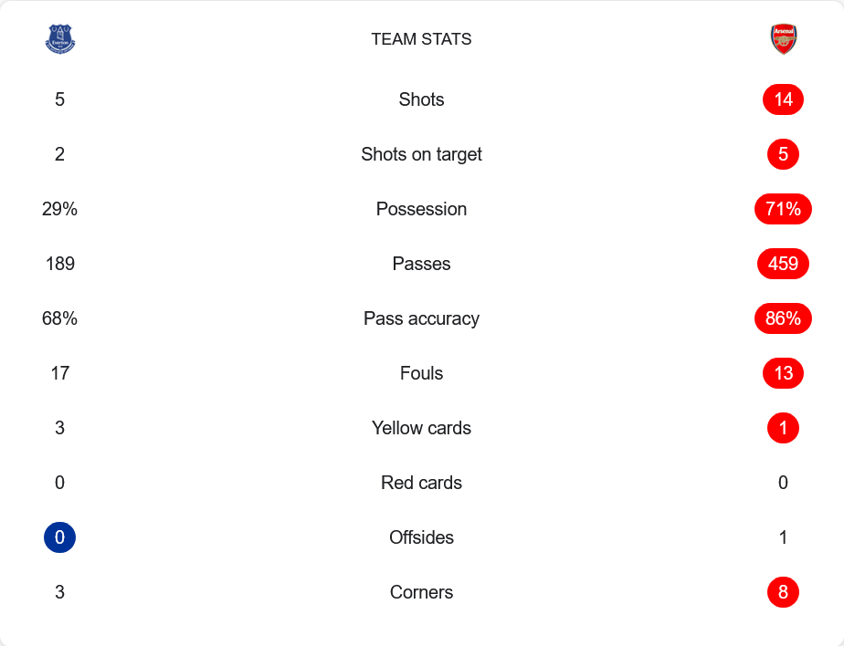 เกมนี้อาร์เซนอลทำได้เหนือกว่าอย่างชัดเจนในแง่ของการครองบอลและการสร้างโอกาส แต่พวกเขายังขาดความคมในการจบสกอร์ ในขณะที่เอฟเวอร์ตันสามารถรับมือกับความกดดันได้อย่างแข็งแกร่ง