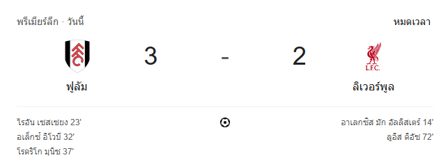 - นาที 97: จบเกม ฟูแล่มเปิดบ้านชนะลิเวอร์พูลแบบระทึก 3-2