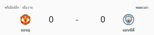 - นาทีที่ 90+5: จบเกมที่ทั้งสองทีมแลกกันหมัดต่อหมัดแต่ไม่มีใครเฉียบขาดพอ แมนฯ ยูไนเต็ด 0-0 แมนฯ ซิตี้