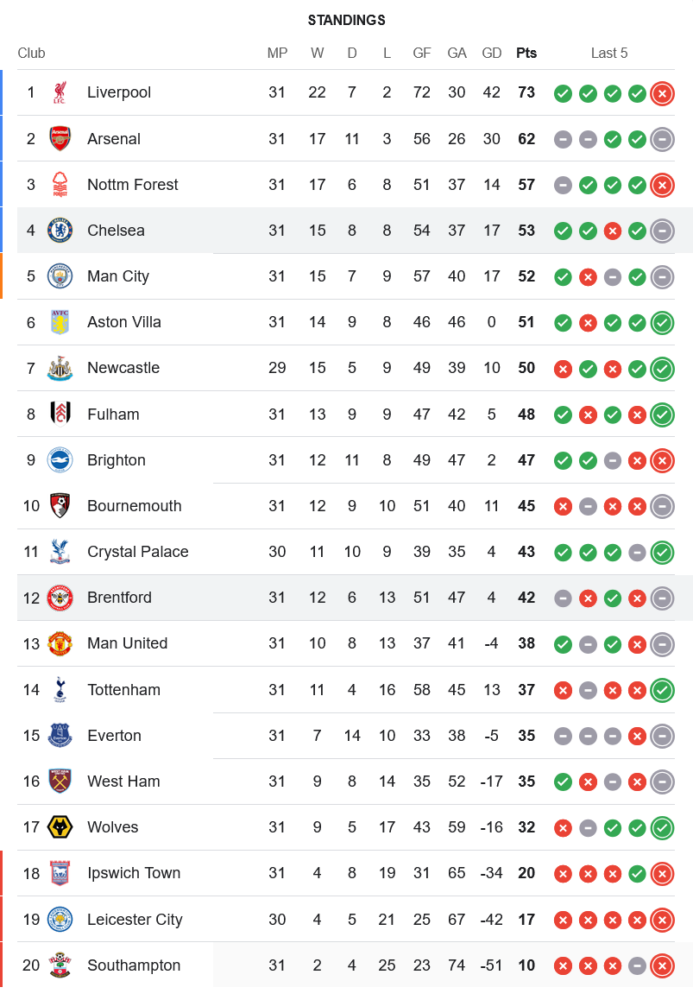 ผลเสมอในเกมนี้ทำให้ เชลซี รั้งอันดับที่ 4 ของตารางคะแนน มี 53 คะแนน จากการลงเล่น 31 นัด ขณะที่ เบรนท์ฟอร์ด อยู่อันดับที่ 12 มี 42 คะแนน ทั้งสองทีมยังคงต้องพยายามอย่างหนักในเกมถัดไปเพื่อรักษาอันดับที่ดีใน ตารางบอล พรีเมียร์ลีก 2025