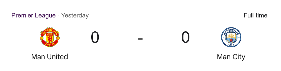 การเจอกันระหว่างสองทีมใหญ่แห่งเมืองแมนเชสเตอร์ในศึก พรีเมียร์ลีก 2025 แมนเชสเตอร์ ยูไนเต็ด เปิดสนามโอลด์ แทรฟฟอร์ด ต้อนรับการมาเยือนของ แมนเชสเตอร์ ซิตี้ การแข่งขันที่แฟนบอลทั่วโลกต่างจับตามอง แต่สุดท้ายจบลงด้วยผลเสมอ 0-0 แบบไร้สกอร์