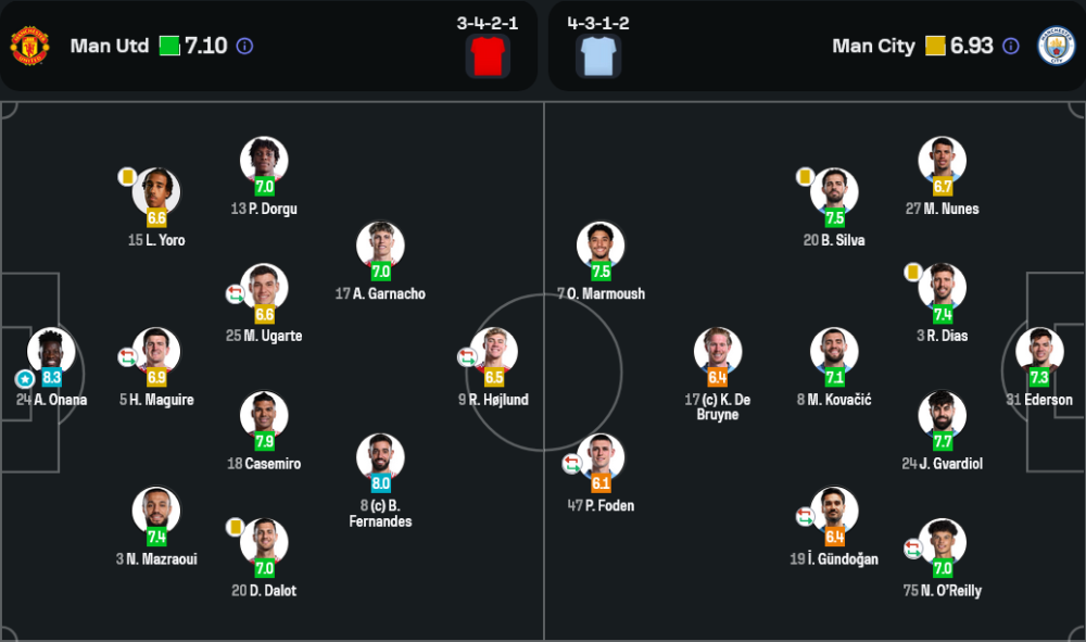 กองหน้า: ปารีส ดอร์กู (7.0), อเลฮานโดร การ์นาโช่ (7.0), ราสมุส ฮอยลุนด์ (6.5)