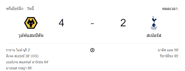 - จบเกม: วูล์ฟแฮมป์ตัน 4-2 ท็อตแน่ม ฮ็อทสเปอร์ เกมสุดเดือดที่ไม่มีใครยอมใคร