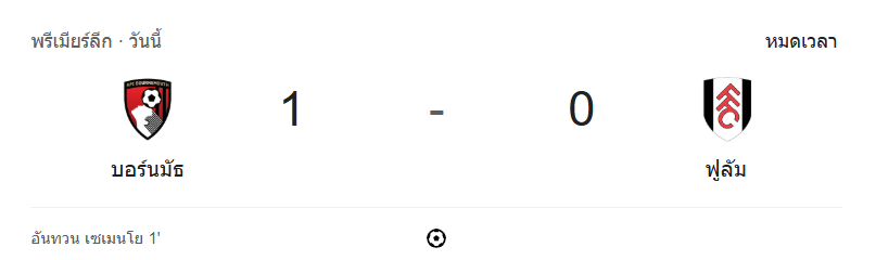 บอร์นมัธไม่ต้องการอะไรไปมากกว่าประตูตั้งแต่ นาทีแรก และพวกเขาก็ได้มันจาก เซเมนโย่ อย่างไวแบบสายฟ้าแลบ แม้เกมจะถูกฟูแล่มบุกหนักตลอดทั้งครึ่งหลัง แต่การเซฟของ เกปา และแนวรับที่วินัยเยี่ยมก็ทำให้ผล ผลบอลสด ที่ออกมาชัดเจนว่า บอร์นมัธ “เฉียบขาด” มากพอที่จะคว้าชัย