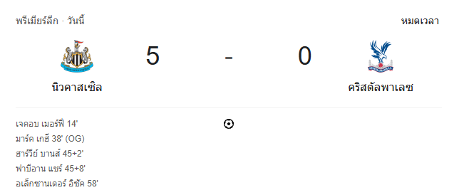 รายงานการแข่งขัน: นิวคาสเซิ่ล ยูไนเต็ด 5-0 คริสตัล พาเลซ
