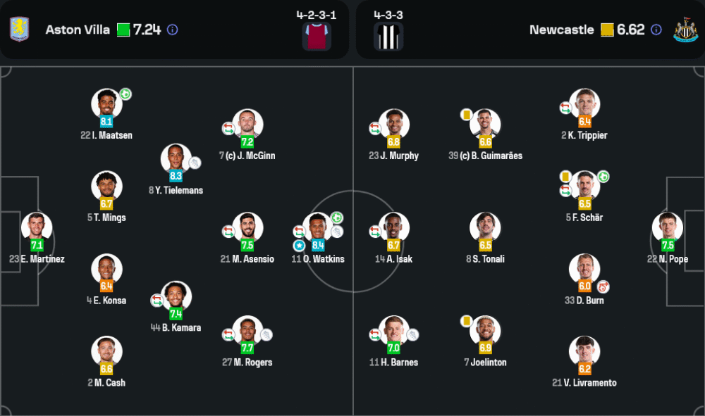โอลลี่ วัตกินส์ คือยอดชายแห่งค่ำคืนนี้ คว้า Player of the Match ไปด้วยคะแนน 8.4 จากการยิง 1 ประตู จ่าย 1 แอสซิสต์ และปั่นป่วนแนวรับนิวคาสเซิ่ลตลอดทั้งเกม พิสูจน์ให้เห็นว่าเขาคือหัวหอกเบอร์หนึ่งของวิลล่าในฤดูกาลนี้อย่างแท้จริง