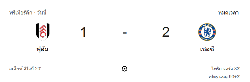 ผลบอลสด พรีเมียร์ลีก 2025 ระหว่าง ทีม ฟูแล่ม vs เชลซี วันนี้ 20/4/68 ดูบอลย้อนหลัง คลิปไฮไลท์ ดูบอลพรีเมียร์ลีก 2025