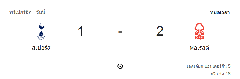- จบเกม! ฟอเรสต์บุกมาเชือดสเปอร์ส 2-1 สร้างความผิดหวังให้แฟนไก่เดือยทองเต็มสนาม