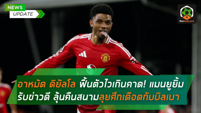 ข่าวดีที่แฟนบอล “ปีศาจแดง” รอคอยได้เดินทางมาถึงเร็วกว่าที่คาด เมื่อ อาหมัด ดิยัลโล ปีกความเร็วสูงของ แมนเชสเตอร์ ยูไนเต็ด ฟื้นตัวจากอาการบาดเจ็บที่ข้อเท้าเร็วกว่ากำหนดอย่างน่าประหลาดใจ และเตรียมกลับมาซ้อมกับทีมในช่วงสัปดาห์หน้า ซึ่งอาจทำให้เขาพร้อมมีชื่อช่วยต้นสังกัดในเกมสำคัญศึก ยูฟ่า ยูโรปา ลีก รอบรองชนะเลิศที่จะพบกับ แอธเลติก บิลเบา ไม่ว่าจะในเลกแรกหรือเลกสอง