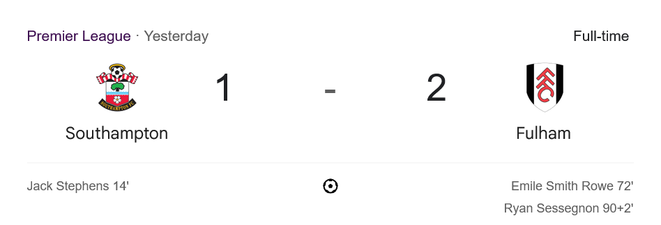 ชัยชนะนัดนี้ทำให้ฟูแล่มเก็บเพิ่มเป็น 51 คะแนนจาก 34 นัด รั้งอันดับ 8 ของตาราง มีลุ้นไต่ขึ้นสูงกว่านี้หากเก็บแต้มต่อเนื่อง ส่วนเซาแธมป์ตันยังคงจมบ๊วยของลีก มีเพียง 11 แต้มจาก 34 นัด โอกาสตกชั้นแทบเป็นเรื่องที่หลีกเลี่ยงไม่ได้