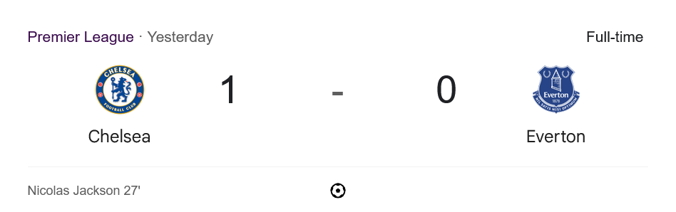 ครึ่งหลัง เอฟเวอร์ตันพยายามปรับแผนบุกมากขึ้นเพื่อหวังตีเสมอ แต่แนวรับเชลซียังเล่นกันได้อย่างมีวินัย ขณะที่โอกาสของทั้งสองทีมมีไม่มากนัก เชลซีเองเน้นครองเกมรักษาสกอร์ ขณะที่ทอฟฟี่สีน้ำเงินแม้มีโอกาสสวนบ้างแต่ขาดความเฉียบคม จบเกม เชลซี เอาชนะ เอฟเวอร์ตัน ไปได้ 1-0 เก็บสามแต้มสำคัญต่อหน้ากองเชียร์ตัวเอง