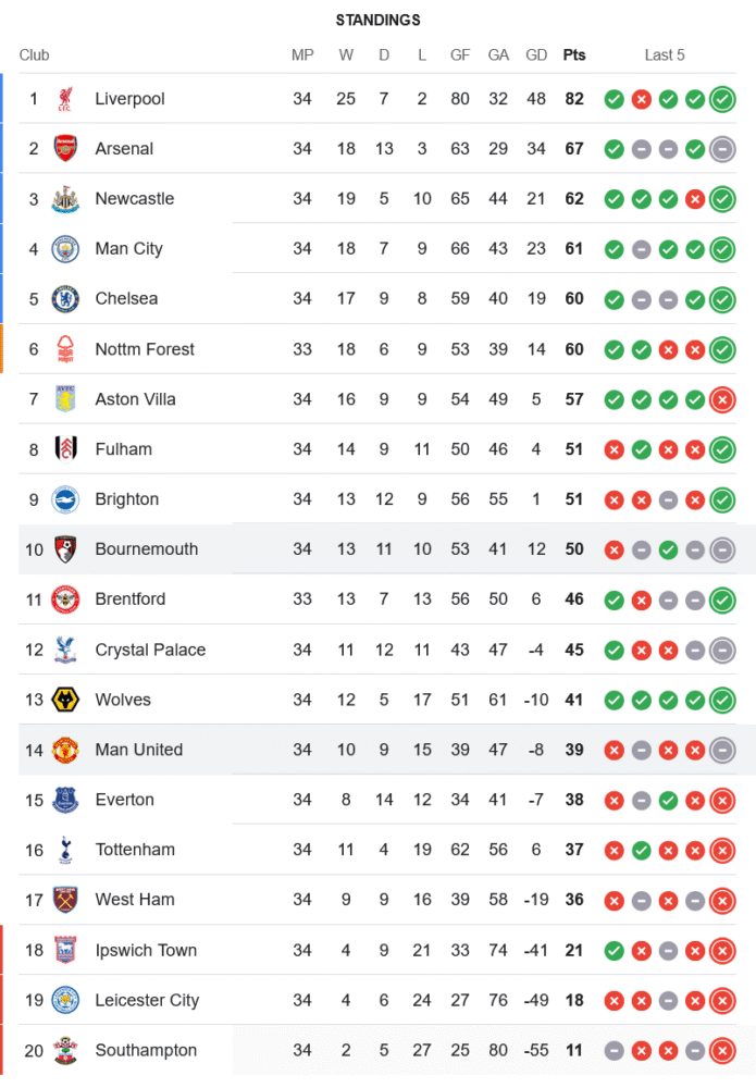ผลเสมอนัดนี้ทำให้ บอร์นมัธ รั้งอันดับ 10 มี 50 คะแนนจาก 34 นัด โอกาสลุ้นอันดับกลางตารางยังเปิดกว้าง ส่วน แมนฯ ยูไนเต็ด สถานการณ์ยังน่าเป็นห่วง จมอยู่ที่ 14 มีเพียง 39 แต้มจาก 34 นัด ห่างโซนตกชั้นไม่มากนัก และยังต้องเร่งฟอร์มหากไม่อยากหลุดกลางตาราง