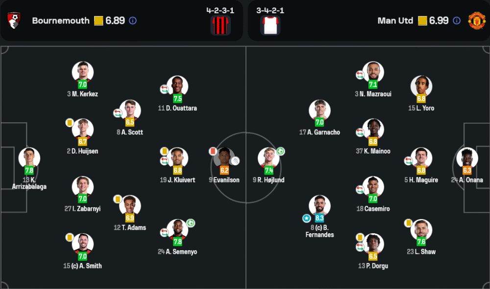 แนวรุก: อเลฮานโดร การ์นาโช่ (7.0), บรูโน่ แฟร์นันด์ส (8.3)