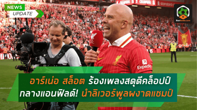 เสียงเพลงและความสุขกึกก้องทั่วแอนฟิลด์อีกครั้ง เมื่อ อาร์เน่อ สล็อต กุนซือคนใหม่ของ ลิเวอร์พูล ปลดล็อกความกดดัน พาทีมคว้าแชมป์ พรีเมียร์ลีก สมัยที่ 20 อย่างยิ่งใหญ่ พร้อมทำเซอร์ไพรส์แฟนบอลด้วยการร้องเพลงสดุดี เจอร์เก้น คล็อปป์ แบบสุดซึ้ง หลังเกมถล่ม ท็อตแน่ม ฮ็อตสเปอร์ 5-1 เมื่อคืนวันอาทิตย์ที่ 27 เมษายนที่ผ่านมา ย้ำชัดว่านี่คือแชมป์สมัยที่สองในรอบเพียง 5 ปี ไม่ใช่ 35 ปีตามที่หลายคนเข้าใจผิด