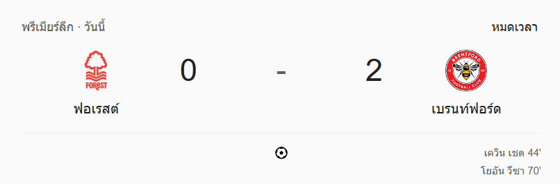 • จบเกม: เบรนท์ฟอร์ดบุกอัด ฟอเรสต์ 2-0 คว้า 3 แต้มล้ำค่ากลับบ้านไปอย่างเฉียบคม