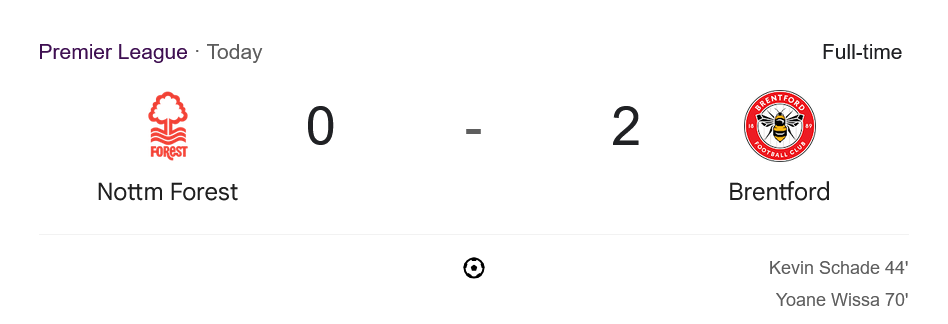 กลับมาสู่ครึ่งหลัง ฟอเรสต์พยายามปรับเปลี่ยนแท็กติกและส่งตัวรุกลงมาหลายคนเพื่อหวังตีเสมอ แต่กลายเป็นว่าโดนจังหวะสวนกลับเล่นงานอีกครั้ง และในนาทีที่ 70 โยอาน วิสซา ก็ไม่พลาดจังหวะสังหารจากการวางบอลยาวของผู้รักษาประตู มาร์ค เฟล็กเก้น ทำให้เบรนท์ฟอร์ดหนีห่างเป็น 2-0 และจบเกมด้วยชัยชนะอันยอดเยี่ยมของทีมเยือน