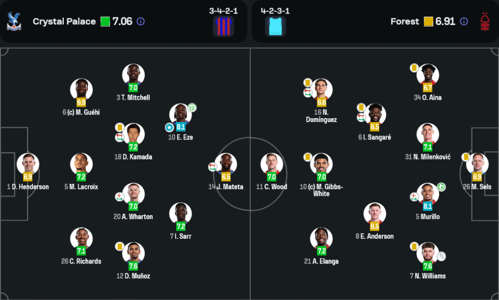 ฝั่ง ฟอเรสต์ ใช้แผน 4-2-3-1 ที่เน้นการครองบอลกลางสนามอย่างแม่นยำ โดยมี ซานกาเร่ และ โดมิงเกวซ คุมเกมแดนกลางอย่างมีวินัย แนวรุกใช้สปีดของ เอลังก้า กับความครีเอทของ กิ๊บส์-ไวท์ เจาะแนวรับเจ้าบ้านบ่อยครั้ง ส่วนแผงหลังมี มูริโย่ และ มิลเลนโควิช ที่ช่วยกันเก็บบอลกลางอากาศและจัดการจังหวะอันตรายได้ดี ซึ่งในจังหวะเซ็ตพีซ มูริโย่ ขึ้นมาทำประตูตีเสมออย่างเด็ดขาด ถือเป็นการใช้โอกาสจากลูกนิ่งได้อย่างมีประสิทธิภาพ