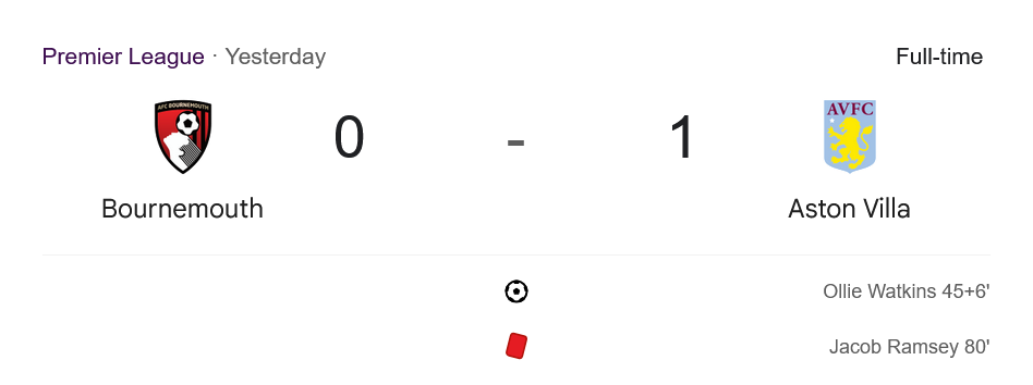 จาก : ผลบอลสด พรีเมียร์ลีก 2025 ระหว่าง บอร์นมัธ เอเอฟซี 0-1 แอสตัน วิลล่า วันนี้ 10/5/68 – บ้านกีฬา