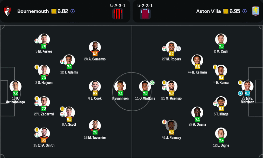 ระบบการเล่นของบอร์นมัธในเกมนี้ใช้ 4-2-3-1 ที่เน้นการครองบอลจากแดนกลางและใช้ความเร็วของตัวริมเส้นอย่างเซเมนโย่และทาเวอร์เนียร์ในการโจมตี แต่กลับเจอแนวรับที่มีการจัดระเบียบของวิลล่าที่เหนียวแน่นไม่เปิดพื้นที่ให้เจาะง่าย แถมพวกเขามีการตั้งโซนรับได้แม่นยำและใช้จังหวะสวนกลับในระบบ 4-2-3-1 ได้อย่างอันตราย โดยเฉพาะการวางบอลเร็วไปที่วัตกินส์ซึ่งเป็นหัวหอกตัวเป้าทำให้สามารถเปิดสกอร์ขึ้นนำได้ในจังหวะชี้ขาด