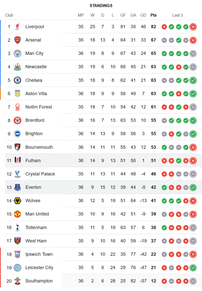 เอฟเวอร์ตันเก็บเพิ่มเป็น 42 คะแนนจาก 36 นัด รั้งอันดับ 13 ของตาราง ห่างจากโซนตกชั้นค่อนข้างปลอดภัย ขณะที่ฟูแล่มยังมี 51 แต้มเท่าเดิม อยู่อันดับ 11 หมดลุ้นพื้นที่ยุโรปแต่ยังมีโอกาสจบในครึ่งบนของตารางหากเก็บแต้มจากสองนัดสุดท้ายได้