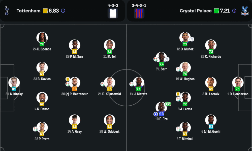 เมื่อมองจากมุม วิเคราะห์บอล เกมนี้ถือเป็นการตัดกันชัดเจนระหว่างการครองบอลกับการใช้โอกาสอย่างชาญฉลาด สเปอร์สแม้จะมีบอลครองมากถึง 47% และจ่ายบอลกว่า 364 ครั้ง แต่คุณภาพของการจบสกอร์กลับต่ำ ยิงเข้ากรอบแค่หนึ่งครั้ง ขณะที่พาเลซเลือกเล่นในระบบ 3-4-2-1 ที่เน้นความแน่นของเกมรับก่อนเปิดโอกาสให้เอเซ่และซาร์ได้เล่นเกมสวนกลับ ซึ่งได้ผลอย่างมากในจังหวะขึ้นเกมทางด้านข้างและการวางบอลยาว พาเลซสามารถยิงได้ถึง 23 ครั้ง เข้ากรอบ 10 เป็นตัวบ่งชี้ถึงการเล่นที่มีเป้าหมายชัดเจน เกมรับของพาเลซนั้นลงตัวและไม่มีความผิดพลาดแบบไร้เหตุผลให้เห็นเลยตลอด 90 นาที