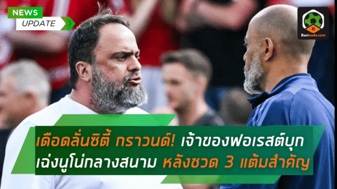 สถานการณ์สุดเดือดกลางสนาม ซิตี้ กราวนด์ กลายเป็นไฮไลต์สำคัญหลังจบเกมพรีเมียร์ลีกนัดล่าสุด เมื่อ เอวานเจลอส มารินาคิส เจ้าของสโมสร น็อตติ้งแฮม ฟอเรสต์ ทนไม่ไหวกับฟอร์มของทีม บุกลงสนามตำหนิ นูโน่ เอสปิริโต้ ซานโต้ อย่างร้อนแรงทันทีที่ผู้ตัดสินเป่านกหวีดหมดเวลา หลังทีมรักทำได้เพียงเปิดบ้านเสมอ เลสเตอร์ ซิตี้ 2-2 ทั้งที่โอกาสเก็บชัยอยู่ในมือ พร้อมสะเทือนต่อเป้าหมายพื้นที่ ยูฟ่า แชมเปี้ยนส์ ลีก