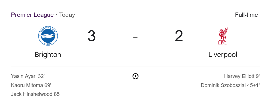 จาก : ผลบอลสด พรีเมียร์ลีก 2025 ระหว่าง ไบรท์ตัน โฮฟ อัลเบี้ยน 3-2 ลิเวอร์พูล วันนี้ 20/5/68 – บ้านกีฬา