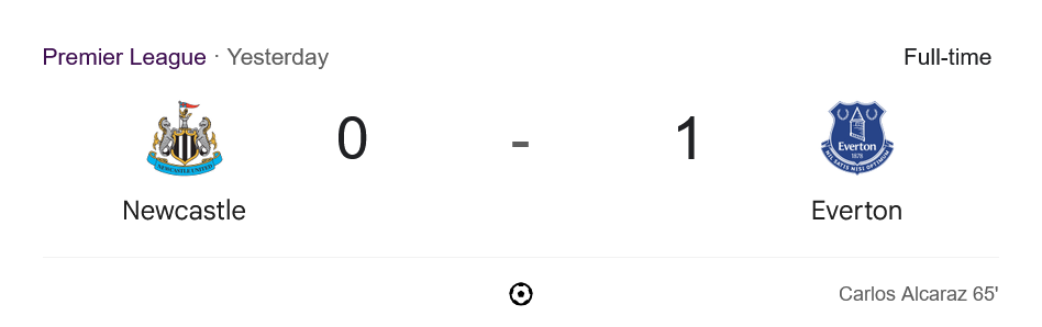 ครึ่งหลังรูปเกมยังเป็นของเจ้าบ้าน แต่กลับเป็นทีมเยือนที่เฉียบคมกว่า นาทีที่ 65 จากจังหวะสวนกลับเร็ว วิตาลี่ มิโคเลนโก้ เปิดบอลให้ คาร์ลอส อัลการาซ ยิงไม่เหลือ ส่งให้เอฟเวอร์ตันขึ้นนำ 1-0 นิวคาสเซิ่ลพยายามทวงประตูคืนตลอดครึ่งหลัง โดยส่งตัวรุกลงมาเพิ่มอย่าง วิลสัน และ โซล่า แต่กลับติดเซฟจอมหนึบ จอร์แดน พิคฟอร์ด ที่โชว์ฟอร์มสุดเหนียว เซฟได้ทั้งลูกยิงของอิซัคและฮาร์วีย์ บาร์นส์ จบเกมเอฟเวอร์ตันคว้า 3 แต้มกลับบ้านได้สำเร็จ
