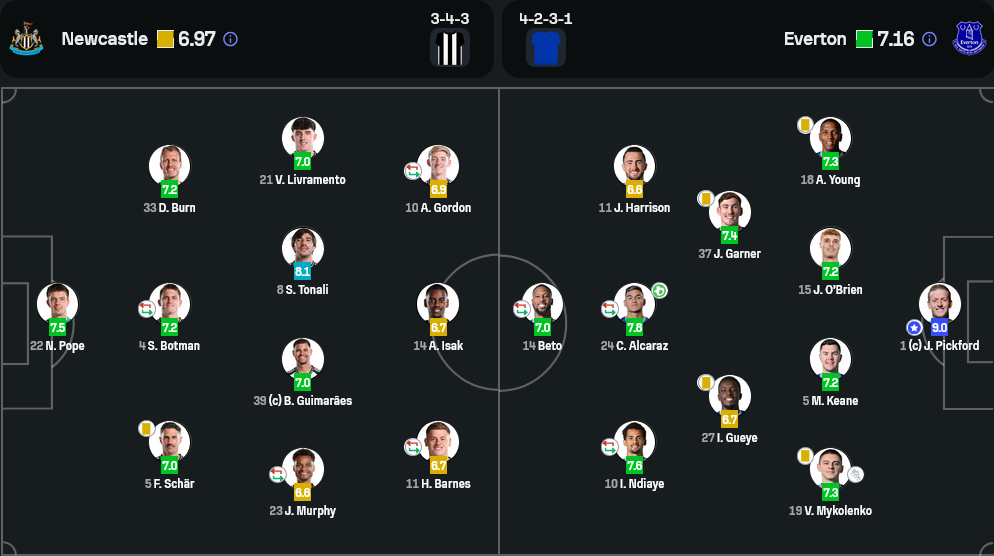 จอร์แดน พิคฟอร์ด นายด่านมือหนึ่งทีมชาติอังกฤษ คือผู้ปิดประตูชัยให้เอฟเวอร์ตันในเกมนี้ ด้วยการเซฟถึง 6 ครั้งสำคัญ รวมถึงลูกยิงจ่อ ๆ ของอิซัคและบาร์นส์ที่เจ้าตัวพุ่งปัดไว้ได้อย่างเหลือเชื่อ รับคะแนนสูงสุดของเกมที่ 9.0 จาก Sofascore ถือเป็น “กำแพงเหล็ก” ของทอฟฟี่ที่แท้จริง