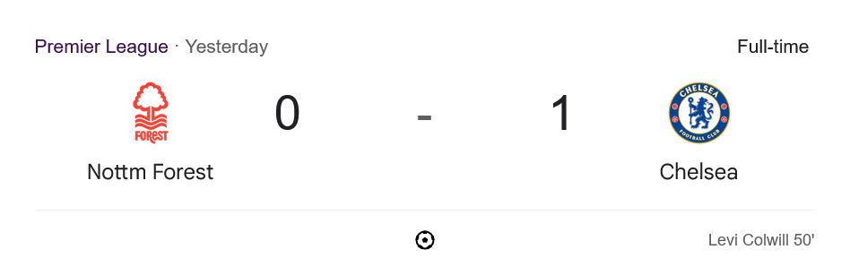 เข้าสู่ครึ่งหลัง เชลซีเริ่มเร่งเกมและมาได้ประตูสำคัญในนาทีที่ 50 จากลูกเตะมุมที่ เปโดร เนโต้ เปิดมาเสาสองให้ เลวี่ โคลวิลล์ ขึ้นโขกเสียบเสาอย่างเด็ดขาดให้ทีมเยือนขึ้นนำ 1-0 หลังจากนั้นฟอเรสต์พยายามเปิดเกมบุก แต่ไม่สามารถทะลวงแนวรับเชลซีที่นำโดย โทซิน อดาราบิโอโย และ มาร์ก กูกูเรญ่า ได้ เกมจบลงด้วยชัยชนะของเชลซีที่เด็ดขาดแม้จะครองบอลน้อยกว่า