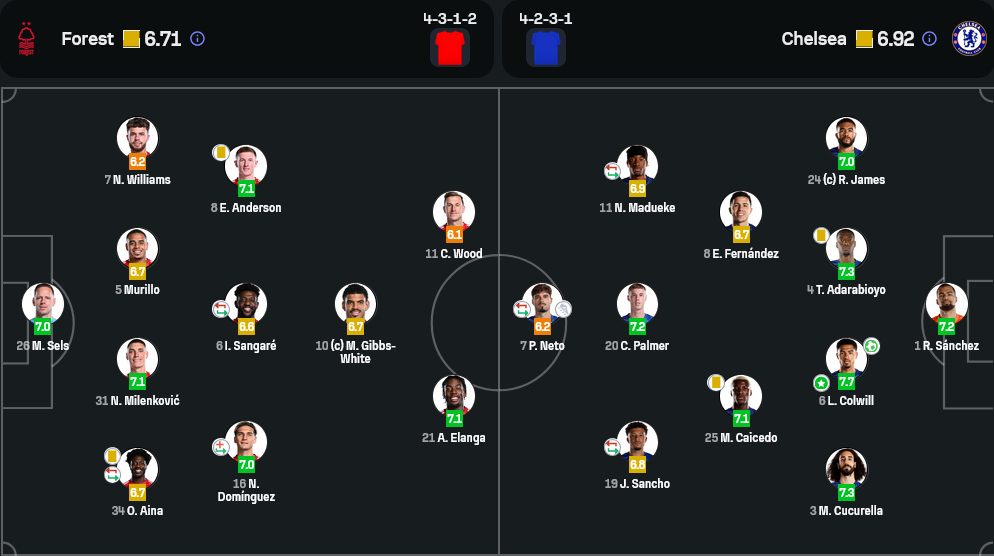 เลวี่ โคลวิลล์ กองหลังเชลซีคือฮีโร่ของเกมนี้อย่างแท้จริง ด้วยลูกโหม่งที่เฉียบขาดในนาทีที่ 50 กลายเป็นประตูชัยให้กับทีม และนอกจากนั้นเจ้าตัวยังโชว์ฟอร์มเกมรับได้อย่างยอดเยี่ยม ป้องกันลูกโด่งและการจ่ายทะลุช่องของฟอเรสต์ได้หมดจด พร้อมรับคะแนนสูงสุด 7.7 จากเกมนี้อย่างสมศักดิ์ศรี