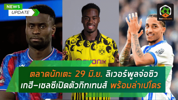 ศึกในสนามอาจพักเบรก แต่ ตลาดนักเตะ ยังคงลุกเป็นไฟอย่างต่อเนื่อง โดยเฉพาะในวันที่ 29 มิถุนายน 2568 ที่แต่ละสโมสรชื่อดังต่างเร่งเครื่องปิดดีลแข้งเป้าหมายในช่วงเวลาสำคัญก่อนพรีซีซั่นจะเริ่มต้น ลิเวอร์พูล กำลังไล่จบดีลคว้าตัว มาร์ค เกฮี ปราการหลังดีกรีทีมชาติอังกฤษจากคริสตัล พาเลซ ขณะที่ เชลซี เดินเกมรุกไม่หยุดหลังเพิ่งประกาศคว้าตัว เจมี่ กิทเทนส์ ปีกตัวจี๊ดจากดอร์ทมุนด์ไปหมาดๆ พร้อมล็อกเป้าไปที่ ชูเอา เปโดร จากไบรท์ตันอีกคน