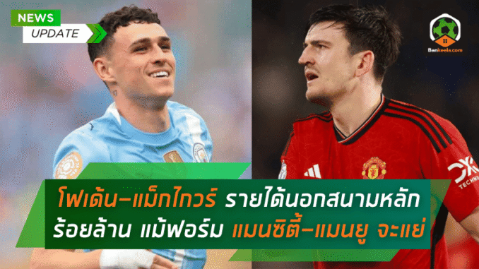 แม้ฟอร์มในสนามจะสั่นคลอน แต่สองสตาร์ทีมชาติอังกฤษอย่าง ฟิล โฟเด้น และ แฮร์รี่ แม็กไกวร์ ยังคงทำเงินนอกสนามได้อย่างมหาศาลชนิดที่เรียกได้ว่า “สวนทางผลงานในสนามอย่างสิ้นเชิง” เมื่อรายได้จากลิขสิทธิ์ภาพลักษณ์และธุรกิจส่วนตัวของทั้งคู่พุ่งแตะหลัก ร้อยล้านบาทต่อปี กลายเป็นอีกหนึ่งตัวอย่างของนักเตะยุคใหม่ที่ไม่ได้พึ่งแค่ผลงานในสนามเพียงอย่างเดียวเพื่อสร้างรายได้