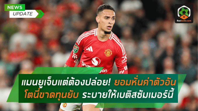 แมนเชสเตอร์ ยูไนเต็ด ยักษ์หลับแห่งพรีเมียร์ลีก ถึงคราวต้องกลืนเลือดตัดใจหั่นค่าตัว อันโตนี่ ปีกทีมชาติบราซิลลงอย่างน่าใจหาย เหลือเพียง 30.2 ล้านปอนด์ หลังยอมรับว่านักเตะไม่อยู่ในแผนของกุนซือใหม่ รูเบน อโมริม อีกต่อไป โดยหวังว่า เรอัล เบติส ที่แสดงความสนใจจะยอมยื่นข้อเสนอซื้อขาด หลังเจ้าตัวฝากผลงานน่าประทับใจในช่วงยืมตัวครึ่งซีซั่นที่ผ่านมา