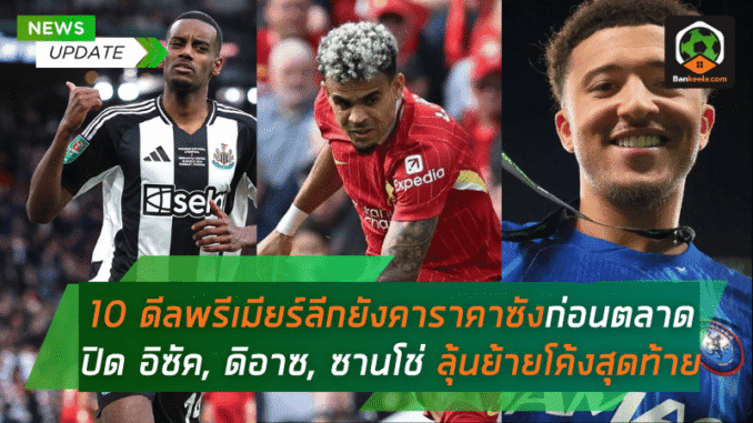 ในบรรดานักเตะชื่อดังที่ยังไม่แน่ชัดว่าซัมเมอร์นี้จะลงเอยที่ใด มีทั้ง อเล็กซานเดอร์ อิซัค, หลุยส์ ดิอาซ, เจดอน ซานโช่ และอีกหลายรายที่สถานการณ์ยังเปลี่ยนได้ทุกวินาที วันนี้ บ้านกีฬา พาคุณเจาะลึก 10 แข้งพรีเมียร์ลีกที่ยังมีโอกาสโยกย้ายทีมก่อนตลาดปิดแบบเข้มข้นจุใจ
