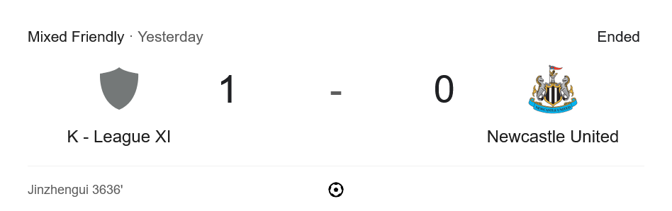 จาก : ผลบอลสด กระชับมิตรสโมสร ระหว่าง เกาหลีใต้ออลสตาร์ 1-0 นิวคาสเซิ่ล ยูไนเต็ด วันนี้ 30/7/68 – บ้านกีฬา