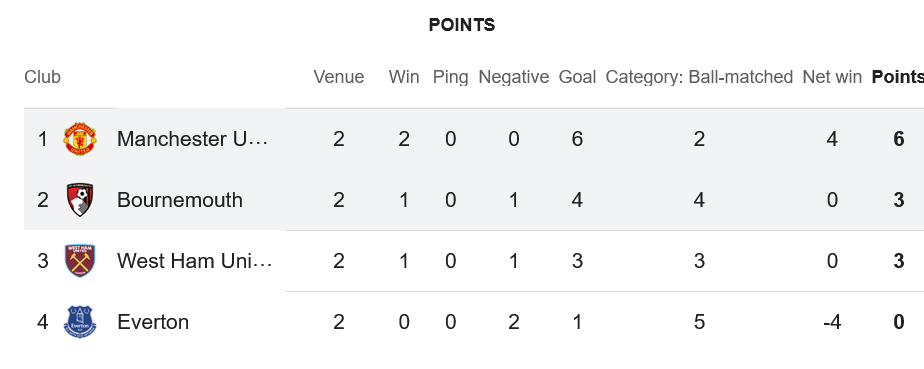 หลังจบนัดนี้ แมนเชสเตอร์ ยูไนเต็ด เก็บ 6 แต้มเต็มจาก 2 นัด ยิงได้ถึง 6 ประตู เสียเพียงลูกเดียว รั้งจ่าฝูงของกลุ่มอย่างแข็งแกร่ง ขณะที่ บอร์นมัธ ยังรั้งอันดับ 2 ด้วย 3 คะแนนจาก 2 นัดเท่ากับเวสต์แฮม แต่ลูกได้เสียดีกว่า ส่วน เอฟเวอร์ตัน จมบ๊วยไม่มีแต้มจากสองนัดแรก สถานการณ์เริ่มน่าเป็นห่วง