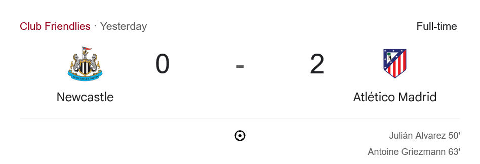 แม้เป็นเพียงเกมอุ่นเครื่อง แต่ชัยชนะนัดนี้ช่วยเสริมขวัญกำลังใจให้ แอต.มาดริด ก่อนเปิดลา ลีกา ส่วน นิวคาสเซิ่ล ต้องเร่งปรับเกมรุกให้คมขึ้นก่อนประเดิมศึกพรีเมียร์ลีก