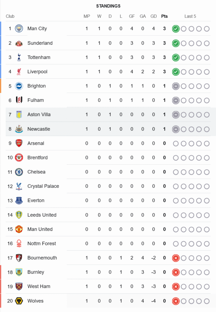 หลังจบเกมนี้ แอสตัน วิลล่า และ นิวคาสเซิ่ล ต่างเก็บแต้มแรกของฤดูกาลได้ โดยรั้งอันดับที่ 7 และ 8 ตามลำดับในตาราง พรีเมียร์ลีก ขณะที่กลุ่มท็อป 4 อย่าง แมนฯ ซิตี้, ซันเดอร์แลนด์, สเปอร์ส และ ลิเวอร์พูล คว้า 3 แต้มเต็มในนัดเปิดหัว ทิ้งห่างไปเล็กน้อยในช่วงต้น