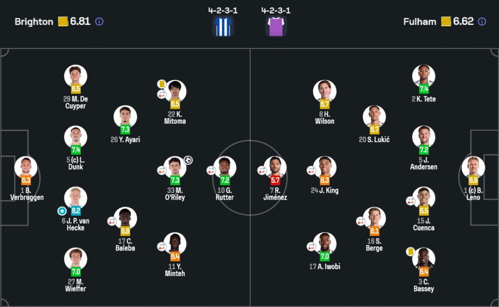 - ตัวสำรองเด่น: Rodrigo Muniz (7.2), Cairney, Traoré, Smith Rowe, Castagne