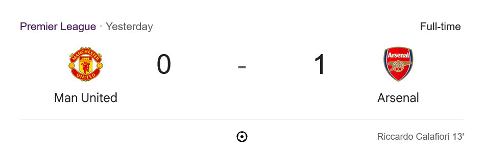 ครึ่งหลัง รูเบน อโมริม แก้เกมทันที ส่งอาหมัด ดิยัลโล ลงมาเติมความเร็วในเกมรุก พร้อมเปลี่ยนตัวชุดใหญ่ถึงสามรายในช่วง 65′ แต่แม้จะครองบอลได้ 62% และมีโอกาสยิงมากถึง 22 ครั้ง ทว่าอาร์เซนอลก็แพ็กเกมรับแน่นหนา ดาบิด ราย่า เซฟอุตลุด บวกกับแนวรับอย่างกาเบรียล, ซาลิบา และโอเดการ์ด ทำหน้าที่ได้อย่างแข็งแกร่ง จบเกม ผีแดงทำได้แค่หวดแห้ง ปืนใหญ่คว่ำเจ้าบ้าน 1-0 อย่างเด็ดขาด