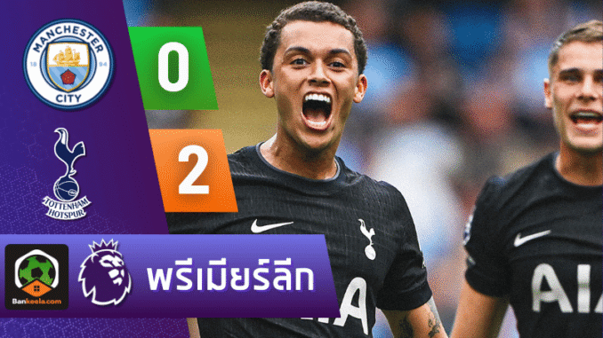 ศึกพรีเมียร์ลีกค่ำคืนที่ผ่านมา บ้านผลบอล รายงานผลสุดช็อกในเอติฮัด สเตเดียม เมื่อ แมนเชสเตอร์ ซิตี้ ของเป๊ป กวาร์ดิโอลา พลาดท่าคาบ้านโดน ท็อตแน่ม ฮ็อทสเปอร์ บุกสอย 2-0 จาก เบรนแนน จอห์นสัน นาที 35 และ เจา ปาลินญ่า ซัดฝังทดเจ็บครึ่งแรก นาที 45+2 ส่งไก่เดือยทองขึ้นนำฝูงร่วมกับอาร์เซน่อลทันที ขณะที่แฟนเรือใบต้องช็อกกับ ผลบอลสด ที่สะท้อนความเฉียบคมและเกมรับอันแข็งแกร่งของทีมเยือน