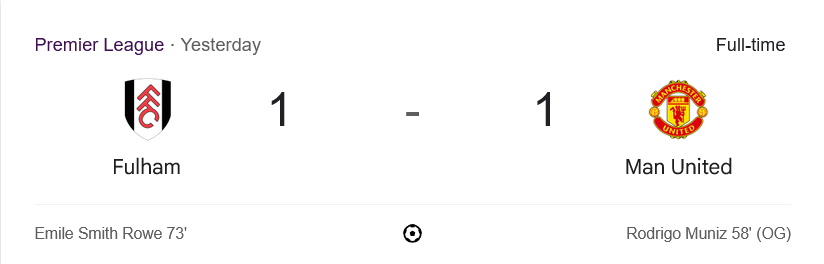 จาก : ผลบอลสด พรีเมียร์ลีก ระหว่าง ฟูแล่ม 1-1 แมนเชสเตอร์ ยูไนเต็ด วันนี้ 24/8/68 – บ้านกีฬา