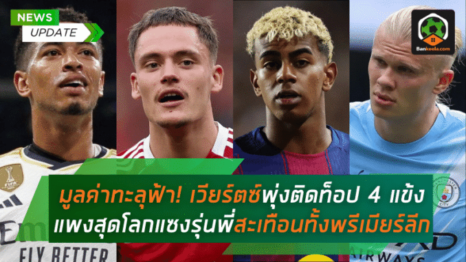 ฟลอเรียน เวียร์ตซ์ มิดฟิลด์ตัวสร้างสรรค์คนใหม่ของ ลิเวอร์พูล กำลังกลายเป็นนักเตะที่ถูกพูดถึงมากที่สุดในวงการลูกหนังเวลานี้ หลังสถาบันวิเคราะห์ชื่อดังอย่าง CIES Football Observatory ประเมินมูลค่าล่าสุดของเจ้าตัวไว้สูงลิ่วระหว่าง 162-189 ล้านยูโร พุ่งทะยานติดอันดับ Top 4 ของโลก เป็นรองเพียง ลามีน ยามาล, เออร์ลิ่ง ฮาลันด์ และ จู๊ด เบลลิ่งแฮม เท่านั้น