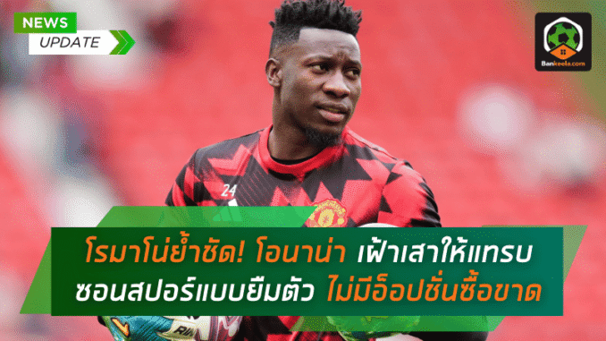 ฟาบริซิโอ โรมาโน่ นักข่าวจอมแม่นแห่งตลาดซื้อขายนักเตะ ออกมายืนยันอย่างเป็นทางการว่า อ็องเดร โอนาน่า นายทวารดีกรีทีมชาติแคเมอรูนของ แมนเชสเตอร์ ยูไนเต็ด ตัดสินใจย้ายซบ แทรบซอนสปอร์ ด้วยสัญญายืมตัว 1 ฤดูกาลเต็ม โดยดีลนี้ไม่มีอ็อปชั่นซื้อขาดและไม่มีการเสียค่ายืมตัวใดๆ ทั้งสิ้น