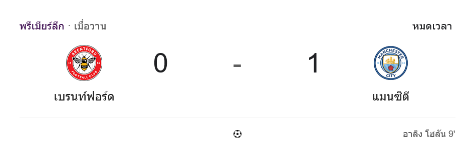 จาก : ผลบอลสด พรีเมียร์ลีก ระหว่าง เบรนท์ฟอร์ด 0-1 แมนเชสเตอร์ ซิตี้ วันนี้ 5/10/68 – บ้านกีฬา