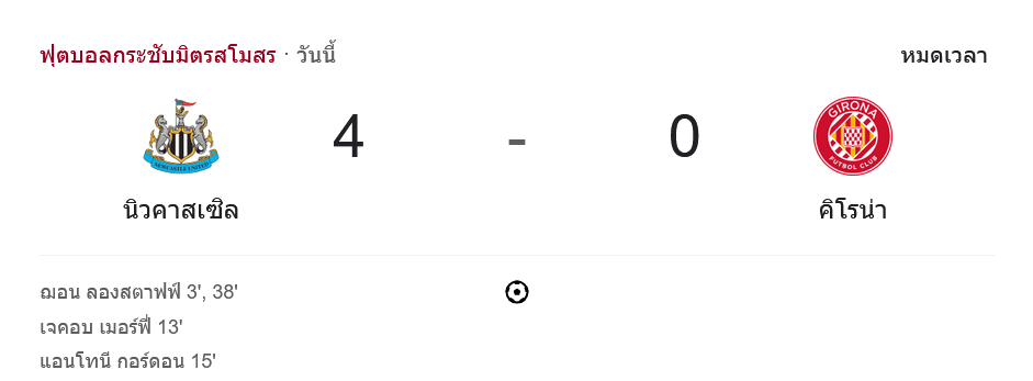 ผลบอลกระชับมิตรสโมสร 2024: นิวคาสเซิ่ล ยูไนเต็ด 4-0 คิโรน่า