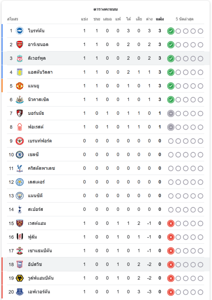 ตารางคะแนนพรีเมียร์ลีก 2024