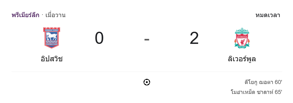 การแข่งขัน พรีเมียร์ลีก 2024 นัดแรกระหว่างทีม ลิเวอร์พูล และ อิปสวิช ทาวน์ จบลงด้วยชัยชนะของ “หงส์แดง” ลิเวอร์พูล ที่บุกมาเก็บสามแต้มแรกได้สำเร็จด้วยสกอร์ 2-0 ทำให้พวกเขาเริ่มต้นฤดูกาลอย่างมั่นใจ โดยได้ประตูจาก ดิโอโก้ โชตา และ โมฮาเหม็ด ซาลาห์